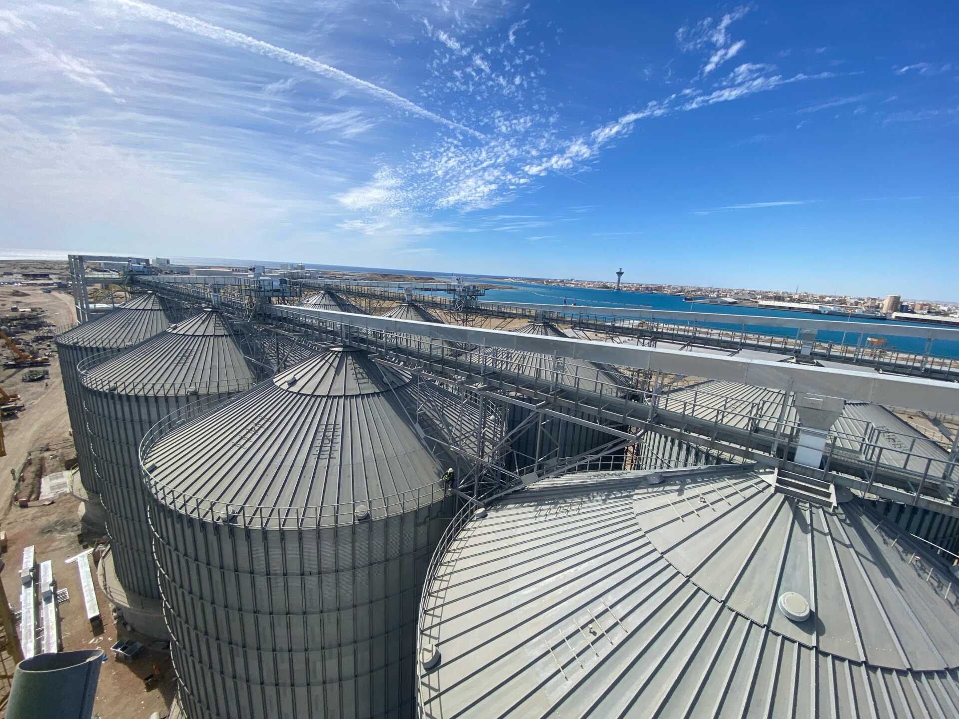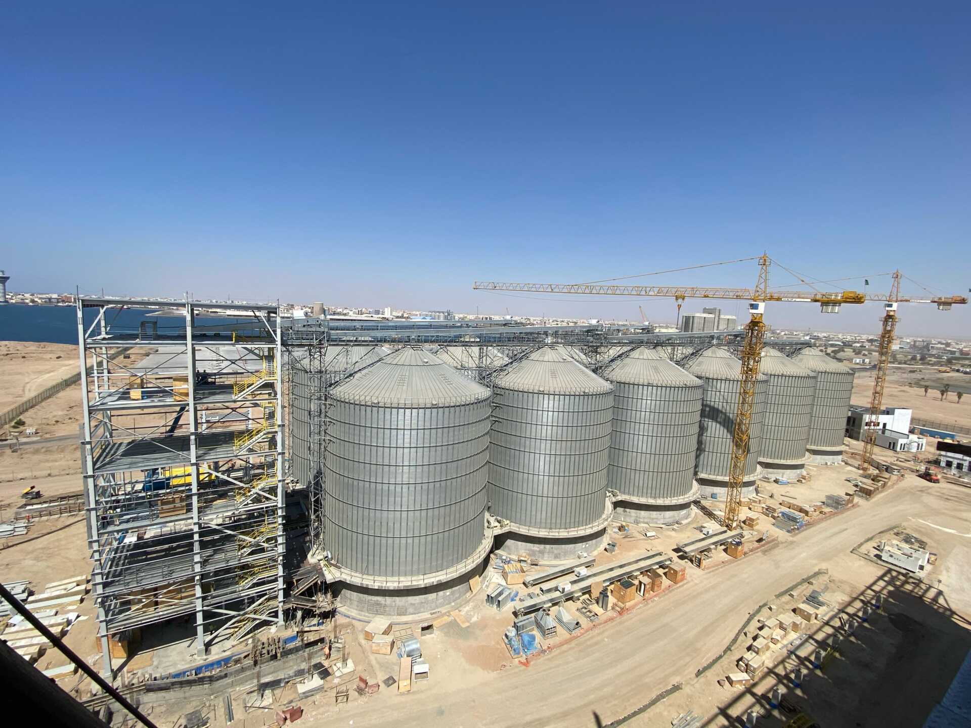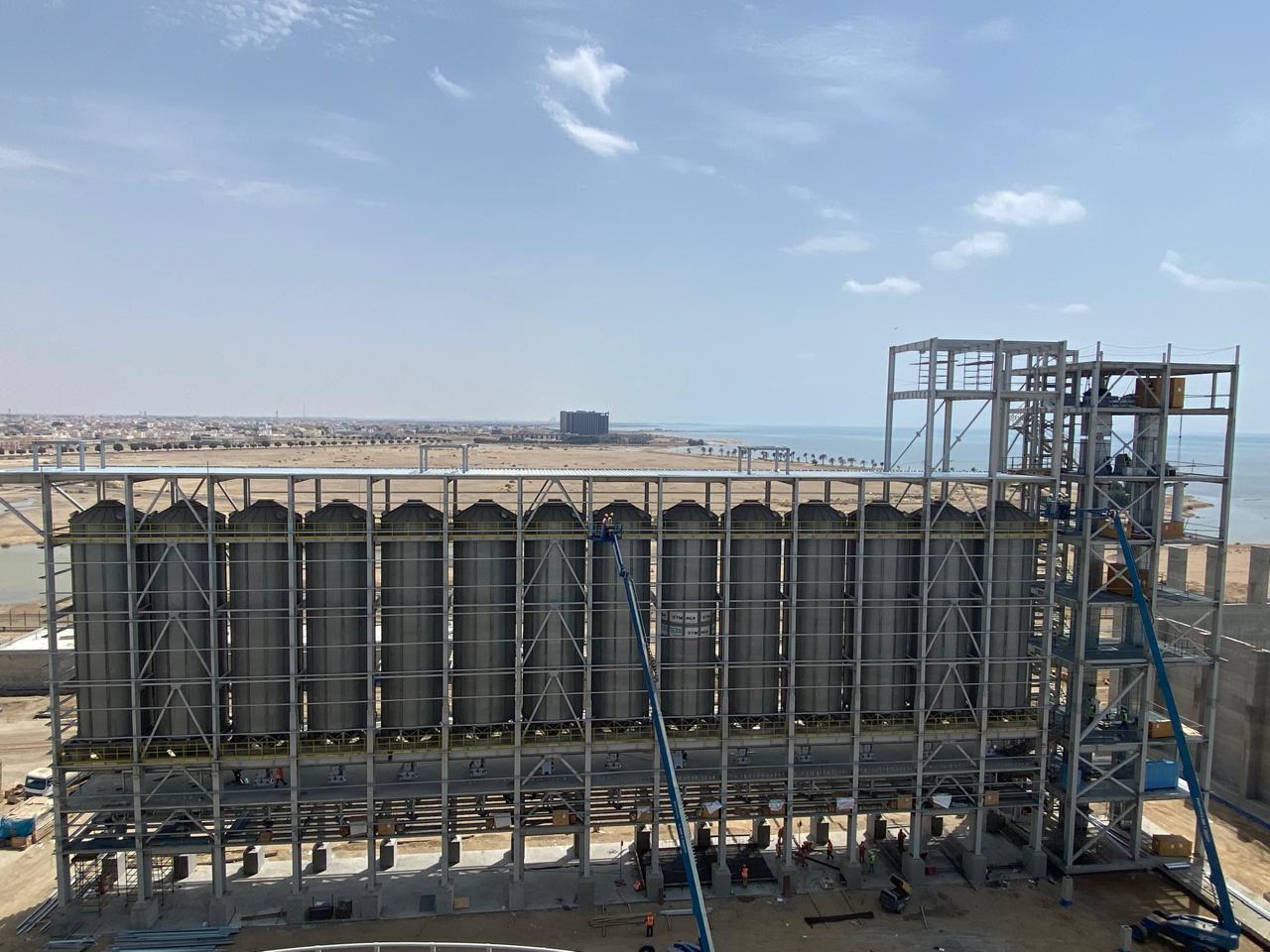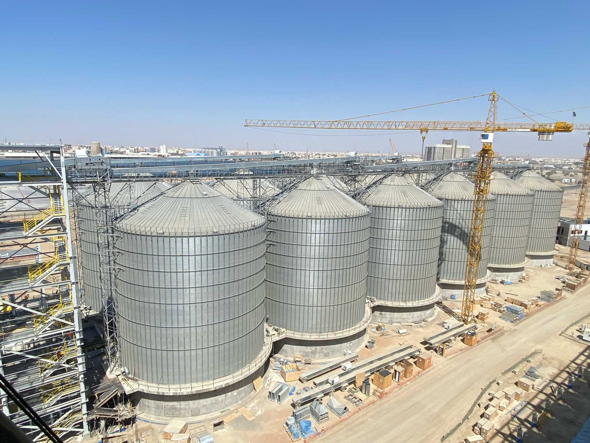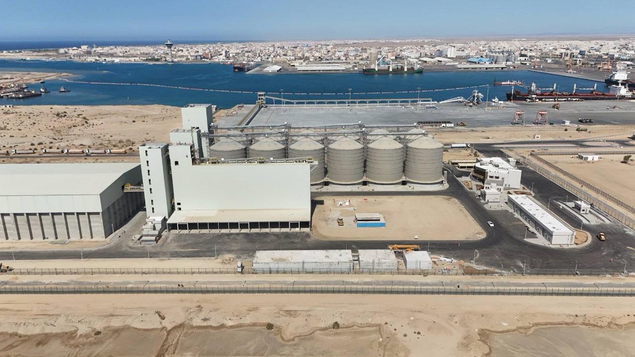 The grain terminal at Yanbu Port is being constructed by Haif Company on an area of 227,941 m². The project aims to enhance food security through steel silos and a warehouse with a total capacity exceeding 100,000 tons, in addition to a marine unloading crane and integrated infrastructure networks. Its value, after change orders, is estimated at around SAR 464 million.